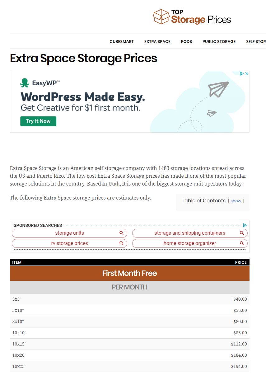 Extra Space Storage Prices Get link Facebook X Pinterest Email Other Apps March 01, 2020 Extra Space Storage Prices https://www.topstorageprices.com/extra-space-storage-prices/ The following Extra Space storage prices are estimates only. Get link Facebook X Pinterest Email Other Apps Comments